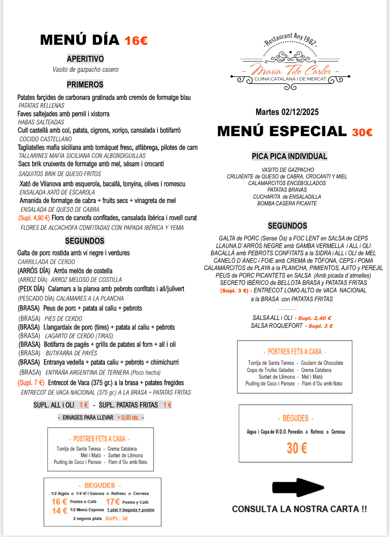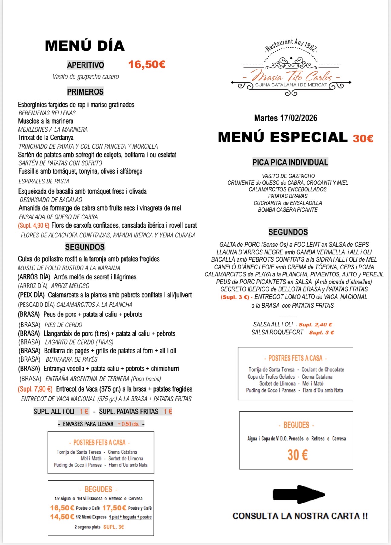 MENÚ CALÇOTADA del 15 Nov. de 2025 al 26 de Abril 2026!!
