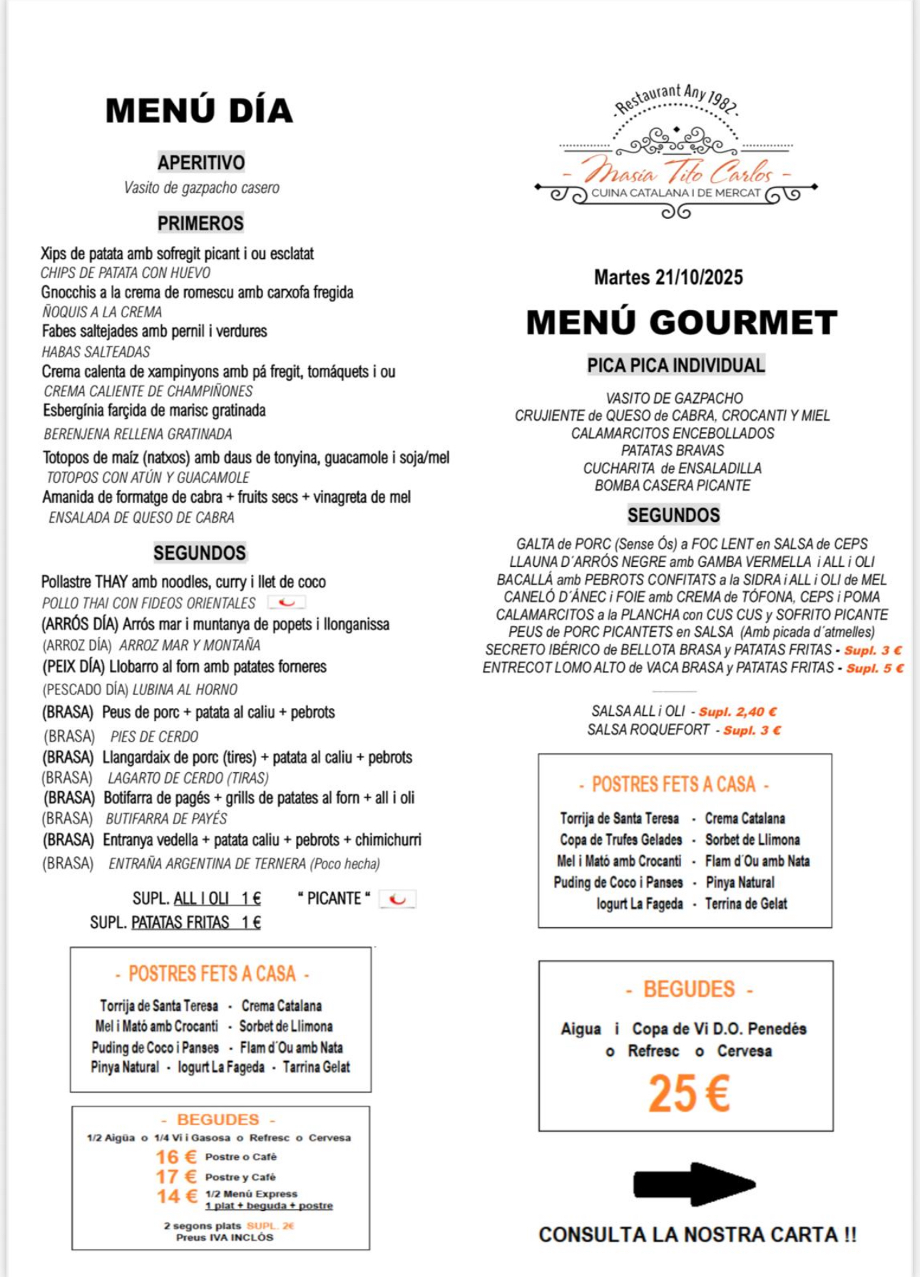 MENÚ CALÇOTADA del 16 Nov. de 2024 al 27 de Abril 2025!!